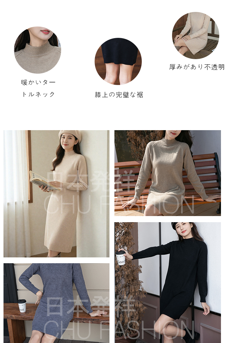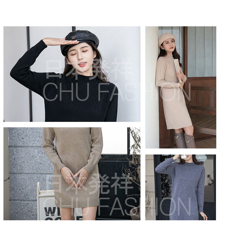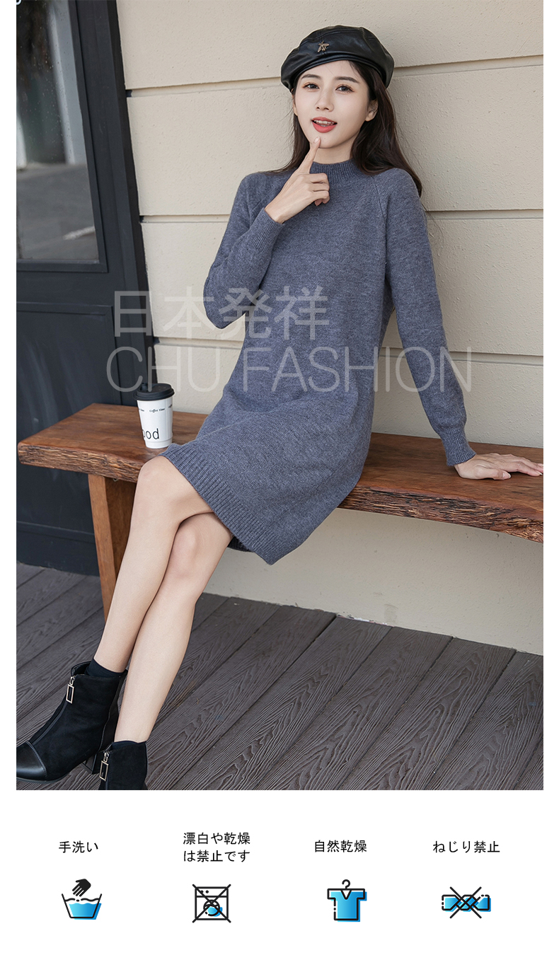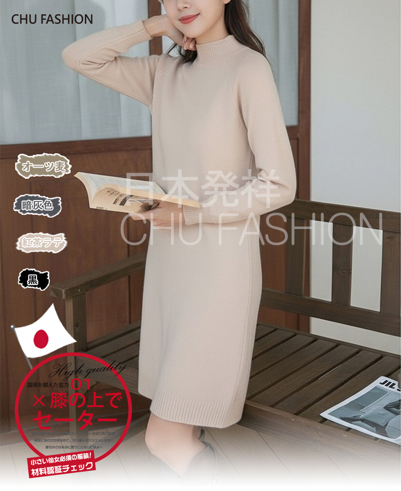 【CHU】柔芯漫舞|日本輸入半高領針織長版毛衣|膝上款 可當裙 包芯紗柔軟 秋冬百搭